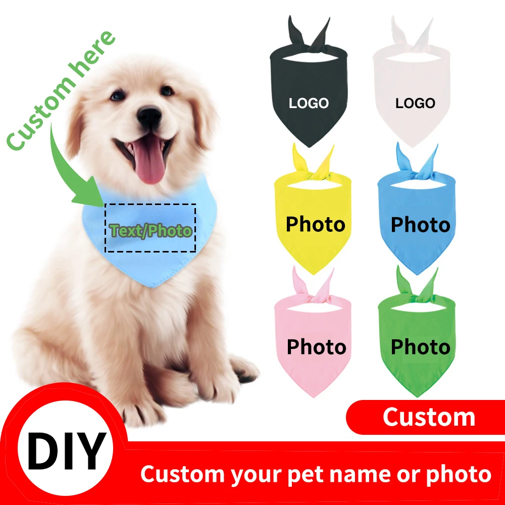 Индивидуальный хлопковый шарф для домашних животных, сделай сам, рисунок домашних животных, печать текста и логотипа, на заказ, с регулируемой треугольной формой, аксессуары для кошек и собак