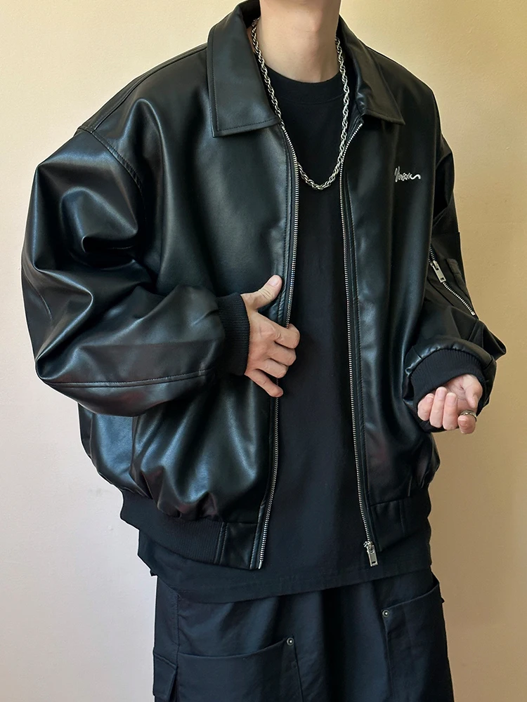 Свободный крой, мужская куртка из искусственной кожи, винтажное летное пальто в американском стиле, повседневная молодежная энергетическая ветрозащитная и прочная верхняя одежда