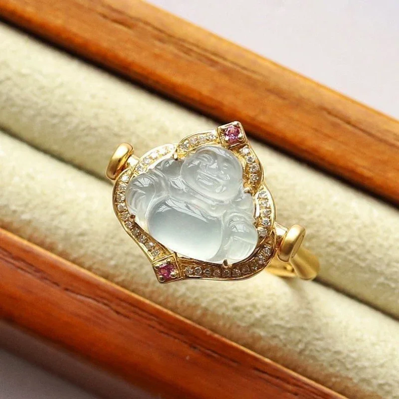 Серебряные инкрустированные натуральным ледяным нефритом, халцедоном, кольца Будды для женщин, кольцо двойного назначения, кулон, классический ювелирный подарок в китайском стиле