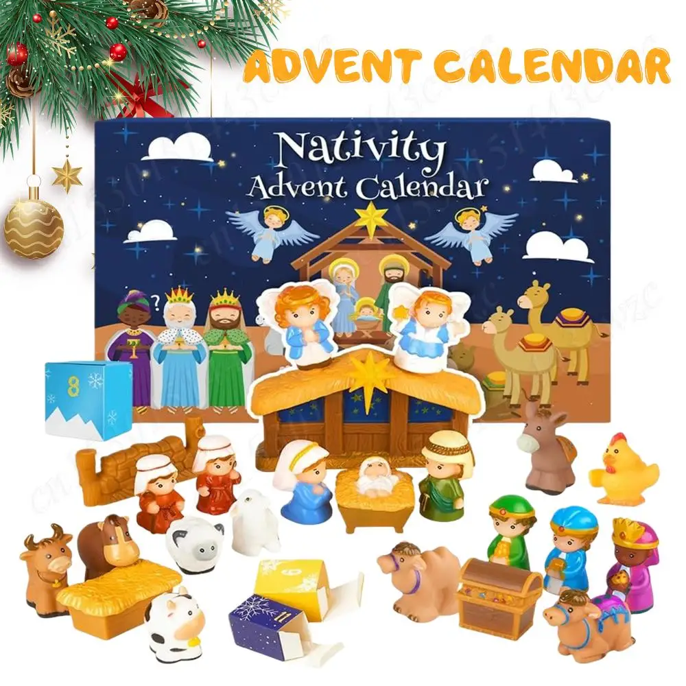 24-дневный Рождественский Адвент-календарь обратного отсчета 2025 Рождественская история Рождественский игровой набор Христианский религиозный адвент-календарь для детей