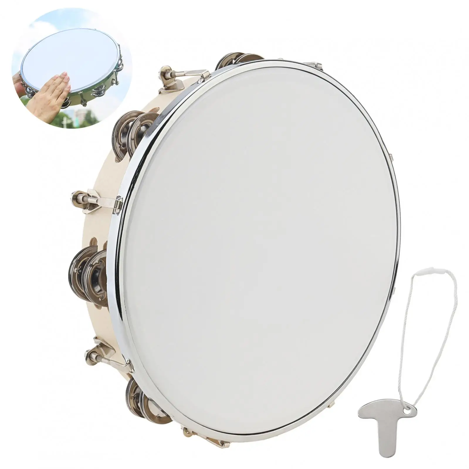 8/10-дюймовый настраиваемый двухрядный деревянный бубен Jingles для сцены/ церкви с ключом для настройки, ручной барабан с усиленным металлическим каркасом