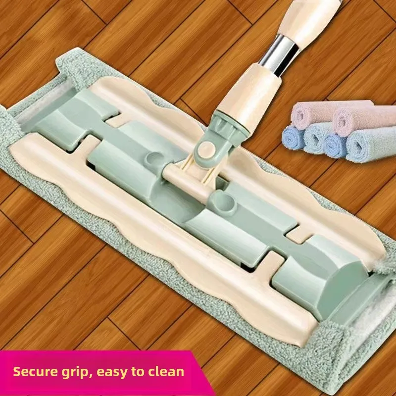 Швабра Lazymen с плоской насадкой и стальным зажимом, без необходимости использования рук, для уборки пола, для домашнего использования, с ручкой из нержавеющей стали, ткань из микрофибры, для удаления пыли и грязи