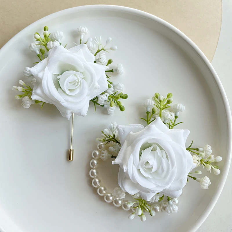 Бутоньерка, цветы для пуговиц, свадебные аксессуары, браслет-корсаж для невесты, браслет для подружек невесты, искусственные розы, товары для вечеринок и выпускных вечеров