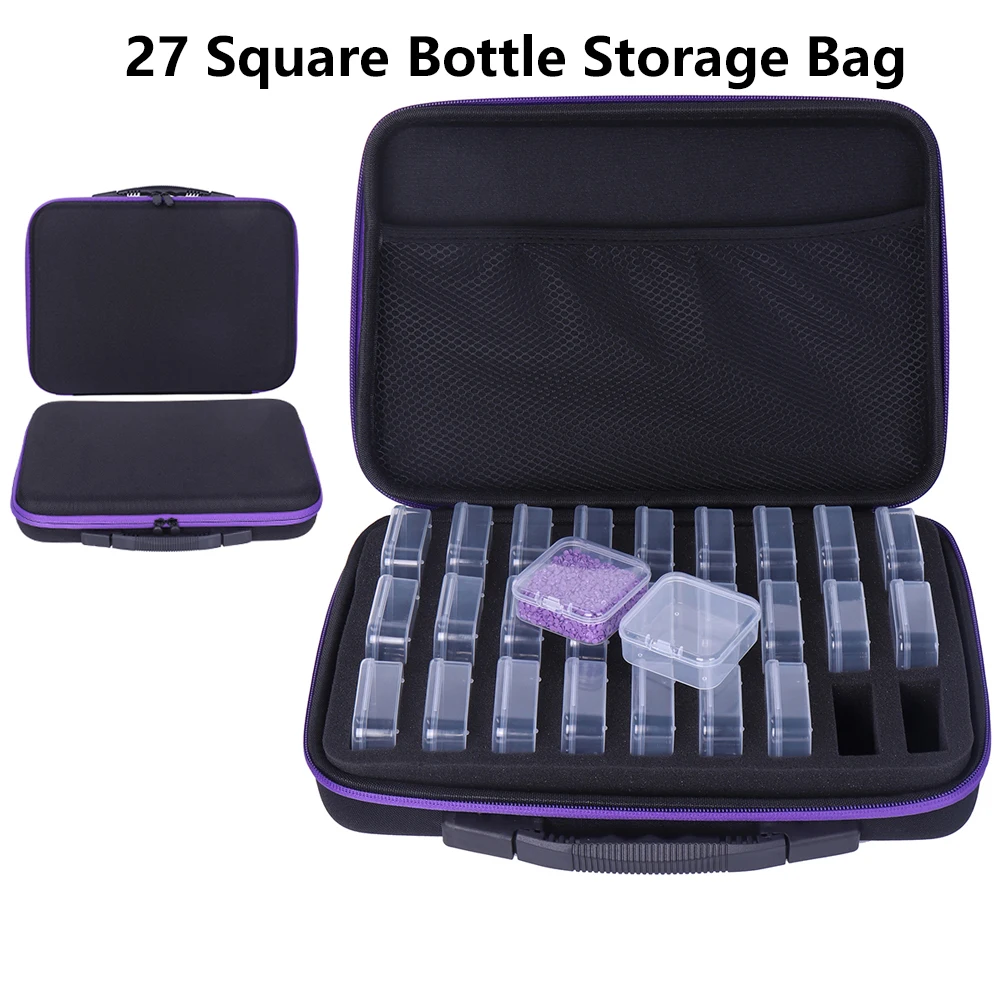 Коробка для хранения аксессуаров для алмазной вышивки на 27 ячеек (квадратов) размером 5,5 см с сумкой для хранения, круглой бутылкой и инструментами - для самостоятельной транспортировки