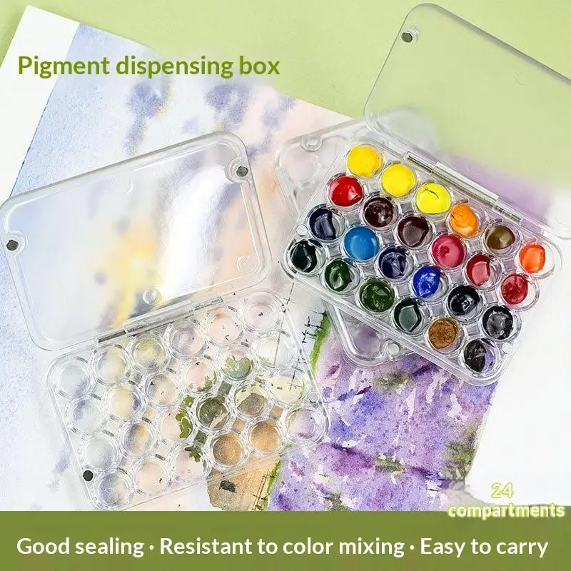 Портативный мини-набор для акварели: магнитный прозрачный акриловый бокс на 24 ячейки для хранения пигментов, инструмент для художественных принадлежностей