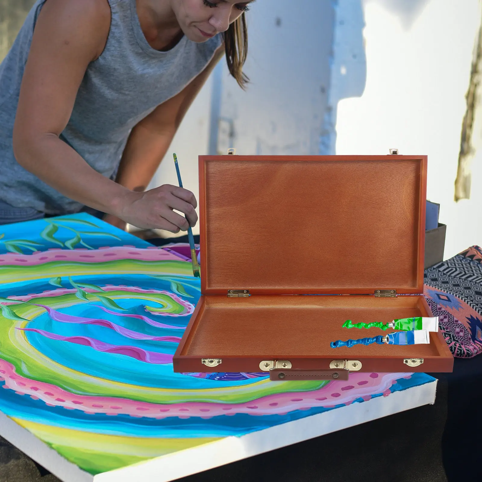 Деревянный ящик для хранения художественных принадлежностей: универсальный портативный кейс для художников и студентов, для хранения карандашей, акварели, масляных красок