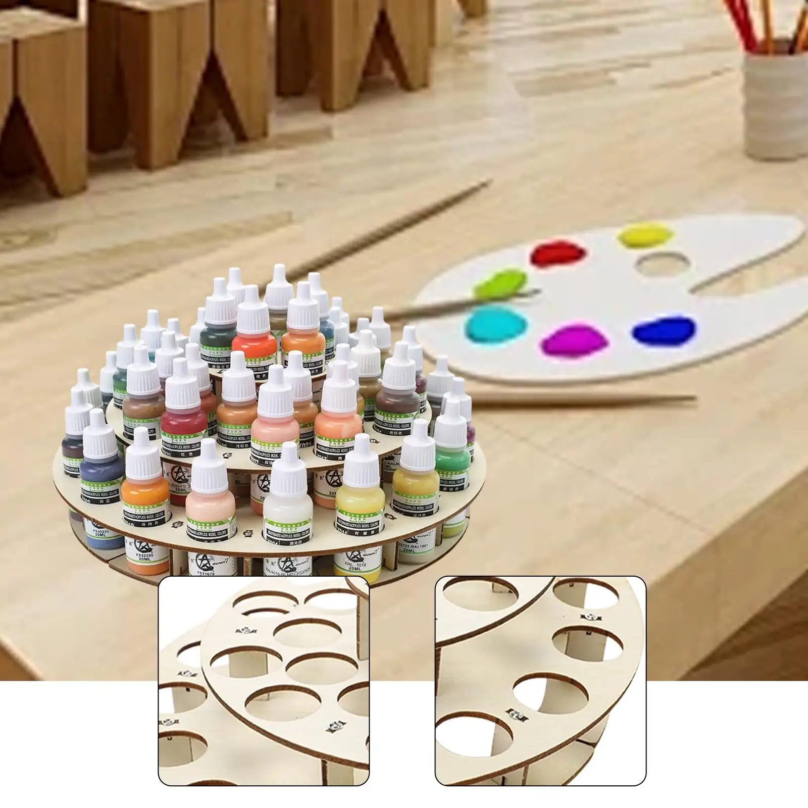 Вращающаяся подставка-органайзер для хранения красок, экономящая место, деревянный держатель для флаконов с краской 20 мл, для мастерской и хобби-комнаты