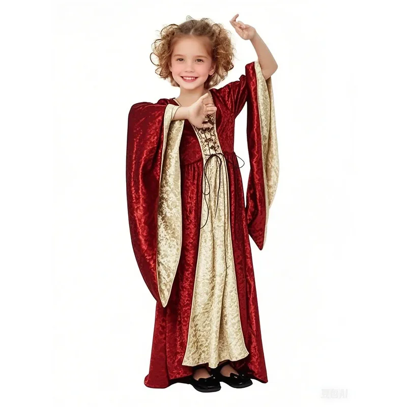Детский средневековый костюм для девочек, платье принцессы в стиле Ренессанс, платье с длинными рукавами, косплей, Хэллоуин, карнавал, вечерние, викторианское платье