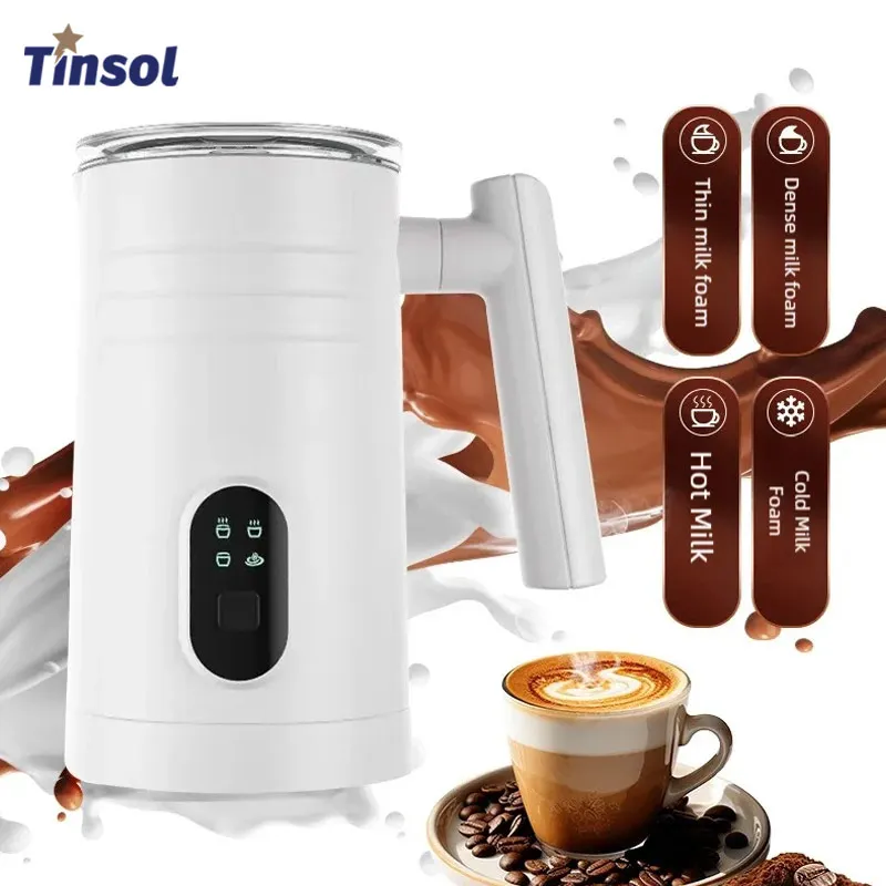 TINSOL 4-в-1 электрический венчик для молока, многофункциональный вспениватель для горячего и холодного латте, капучино, шоколада, автоматический миксер для вспенивания молока