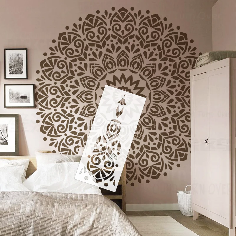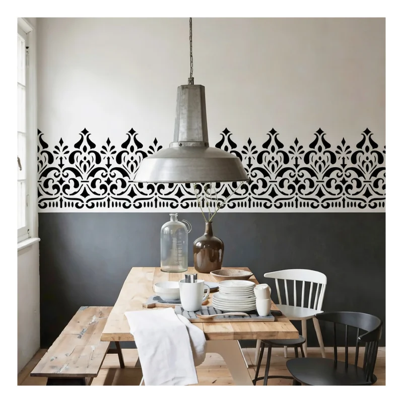 Трафарет для декора стен 30-70 см: шаблон для росписи штукатуркой и шпатлевкой, для нанесения декоративного кирпичного, дамасского, винтажного, ретро-дизайна, люкс S081