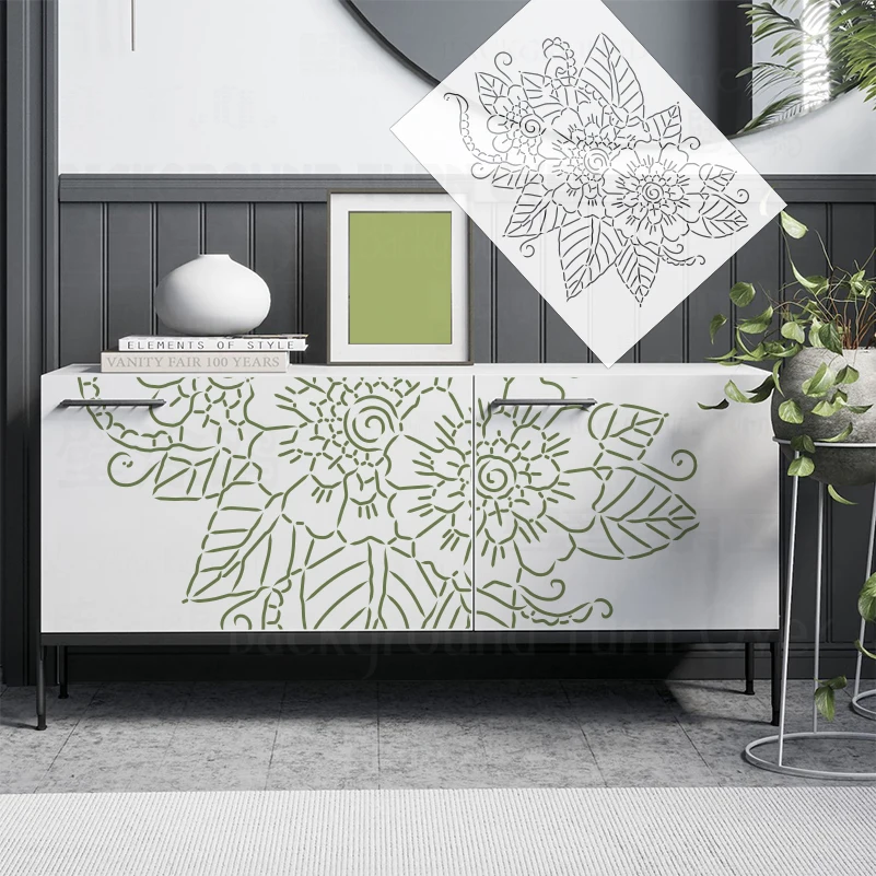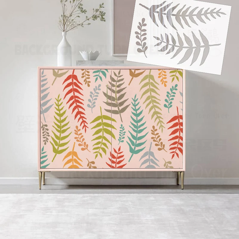 Трафарет для декоративной росписи по гипсу 45-74 см, для мебельных мастеров, для декора, для шпаклевки, с крупным цветочным узором в виде папоротника, S588