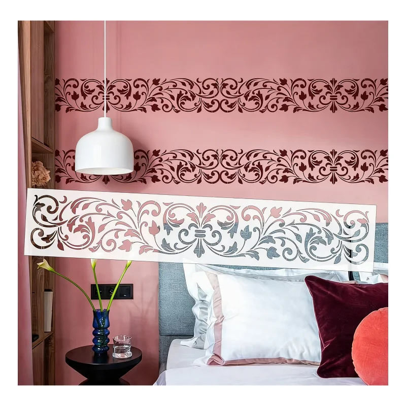 Большой настенный трафарет для росписи гипсовых декоративных элементов, на заказ, винтажный, ретро, барочный, ботанический, для разделителей, бордюров, декора мебели