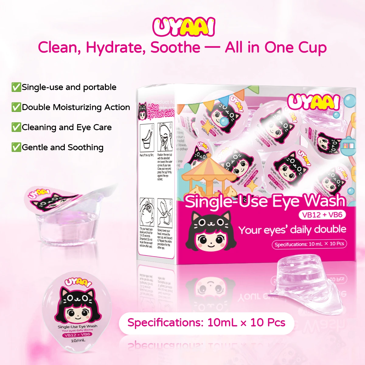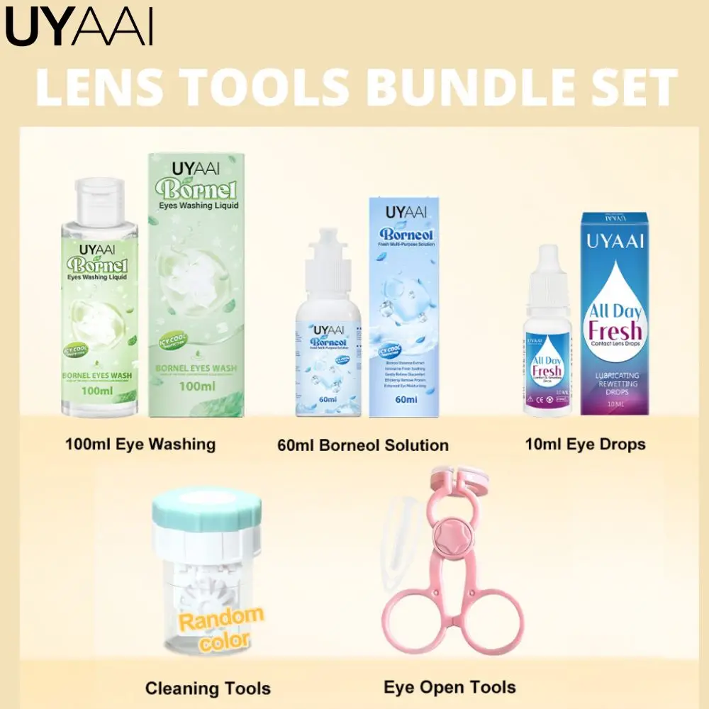 UYAAI Набор контактных линз для начинающих, женские и здоровье, уход за линзами для глаз, 10 мл, капли для глаз, 60 мл, раствор для линз Borneol, инструменты для ношения и мытья