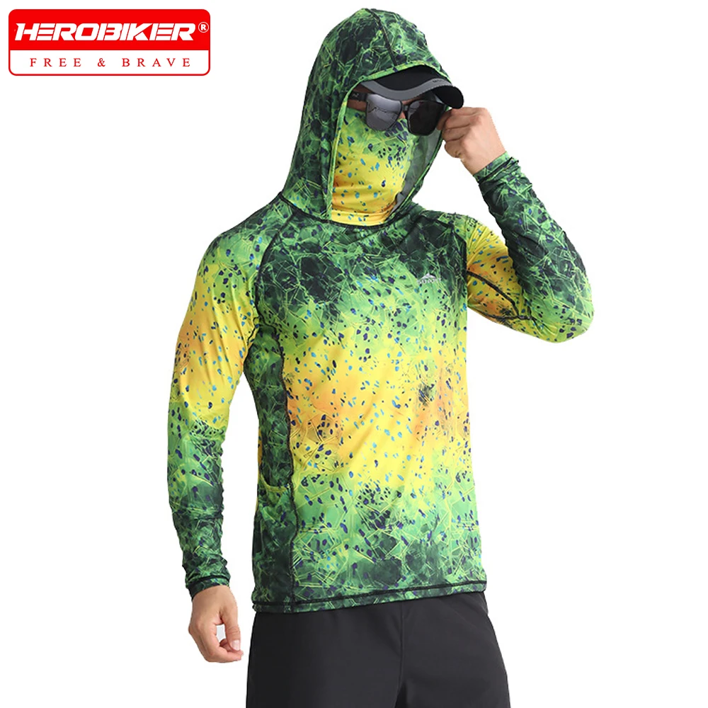 Summer Fishing Clothing with Hood Sunscreen Ice Cool Fishing Shirt Face Mask UPF50+ Outdoor Quick Drying Breathable Fishing Wear