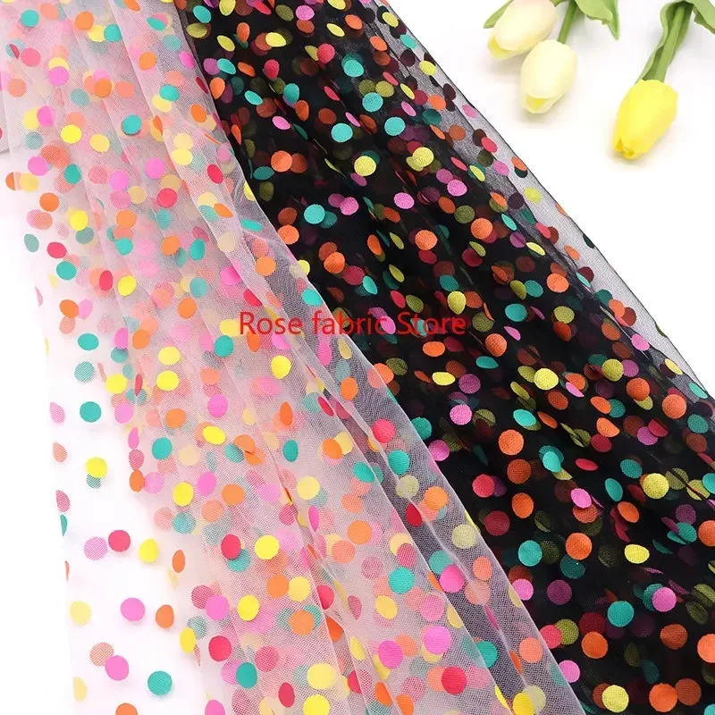 Красочная кружевная ткань с узором в горошек, мягкий тюль с радужными точками для платьев для девочек, детских платьев, декоративное кружево, ширина 59 дюймов.
