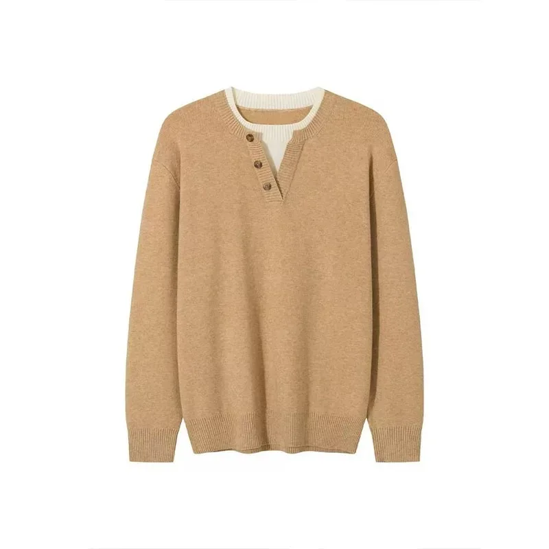 Faionable ort Свободный мужской трикотаж с воротником Генри, искусственный свитер из двух предметов, корейский Sle, осенне-зимний дышащий длинный топ све