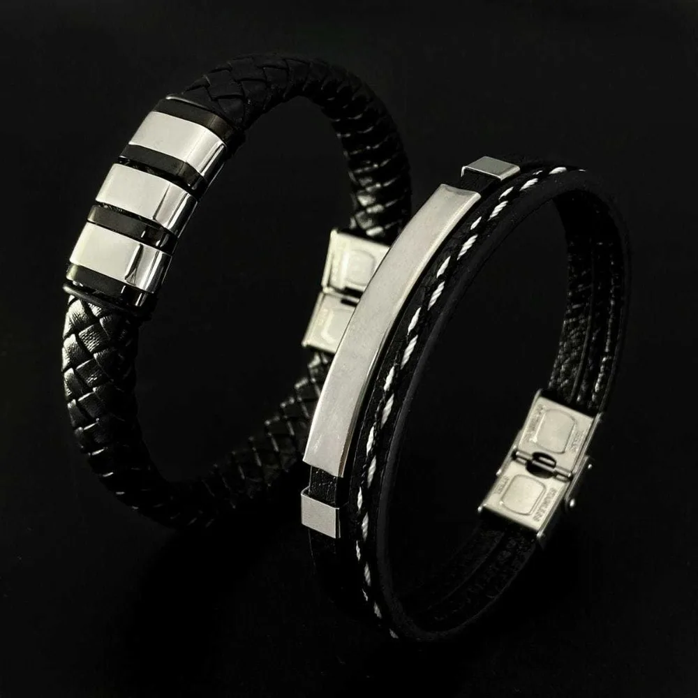 Новый металлический браслет ручной работы в минималистичном стиле, кожаный плетеный браслет с магнитной застежкой из сплава, ретро-браслет для мужчин, модные украшения оптом