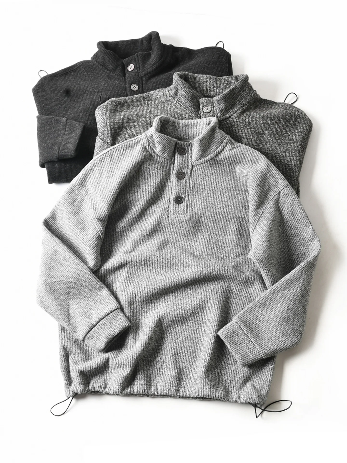Корейские свободные свитера с воротником поло, осень-зима, новая однотонная повседневная мужская одежда, стильные вязаные пуловеры с длинными рукавами на пуговицах