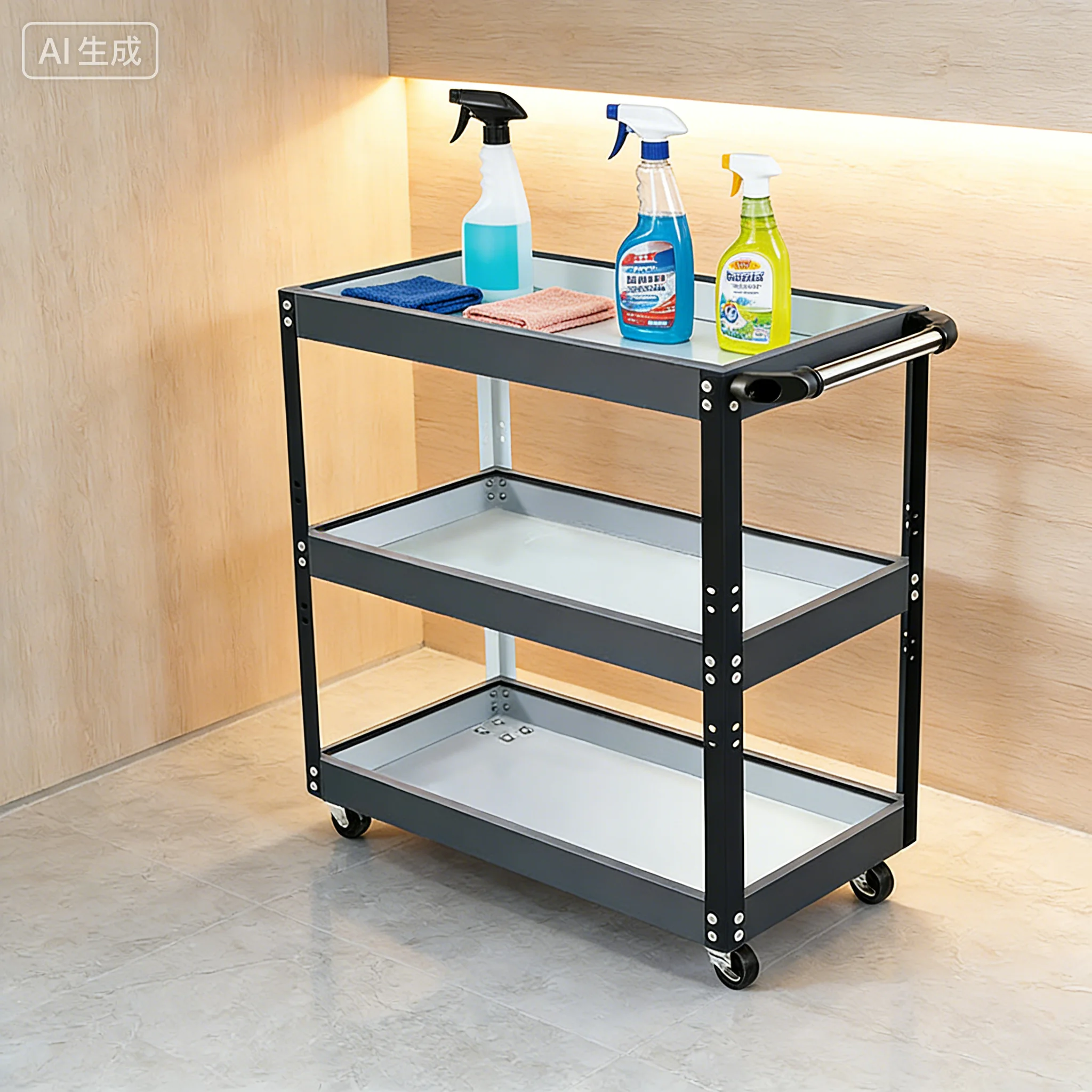 Промышленная 3-уровневая тележка для инструментов YoGeol, регулируемая по высоте металлическая тележка-органайзер с боковыми крючками и тормозными колесиками, для