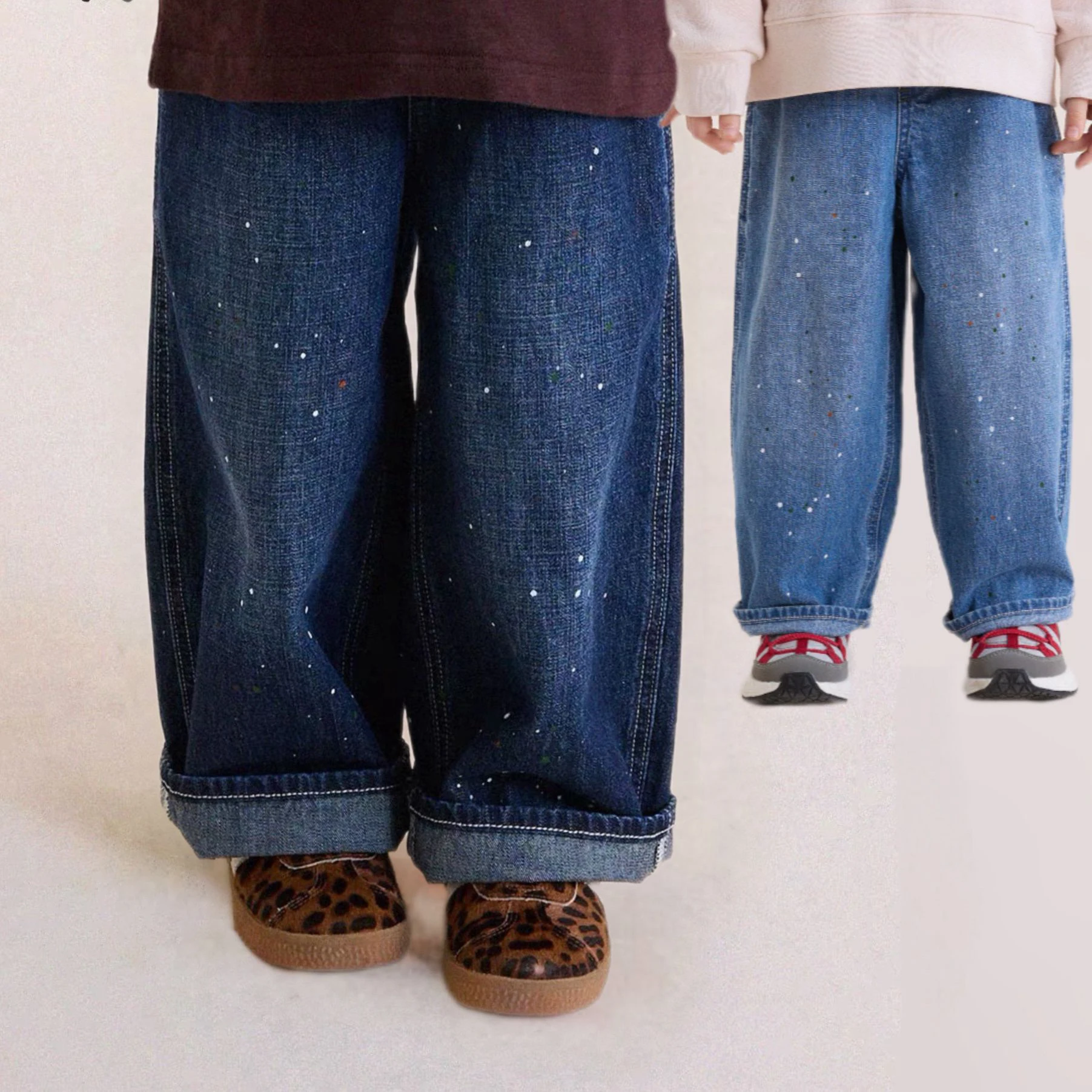 Детские джинсы 2026: Новинка весенней коллекции в японском стиле, прямые джинсы с эффектом брызг краски для мальчиков и девочек, классические универсальные повседневные брюки с широкими штанинами