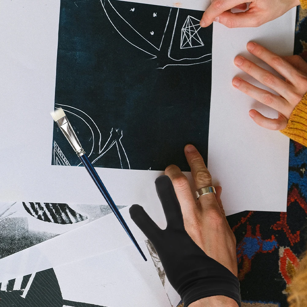 1 шт., противоскользящая ткань с двумя пальцами для рисования на графических планшетах, левая и правая рука, перчатки художника для рисования с двумя пальцами