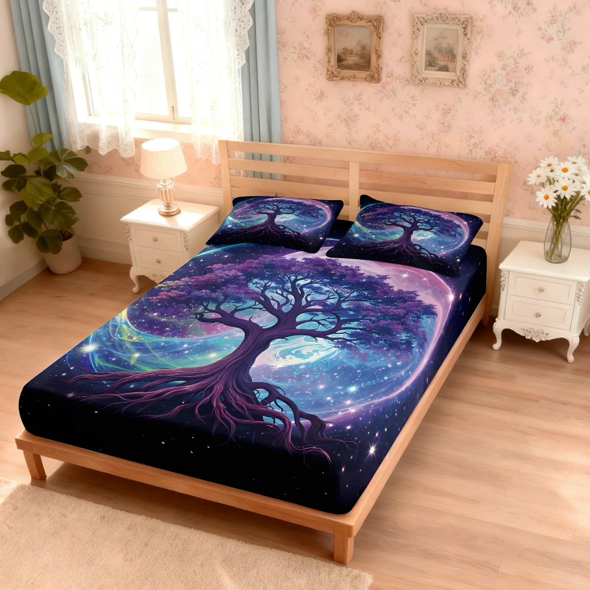 3 шт. фиолетовый комплект простыней в богемном стиле с принтом мандалы, полиэстер, дышащий комплект постельного белья для домашнего декора с 2 наволочками