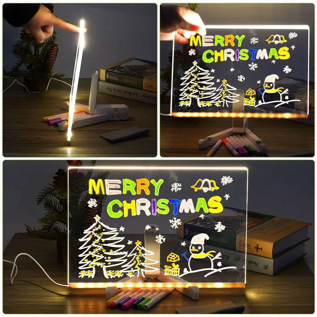 Светодиодная светящаяся доска для рисования для детей, световой акриловый блокнот для сообщений с цветными ручками, ночник для доски «сделай сам», художественная игрушка в подарок