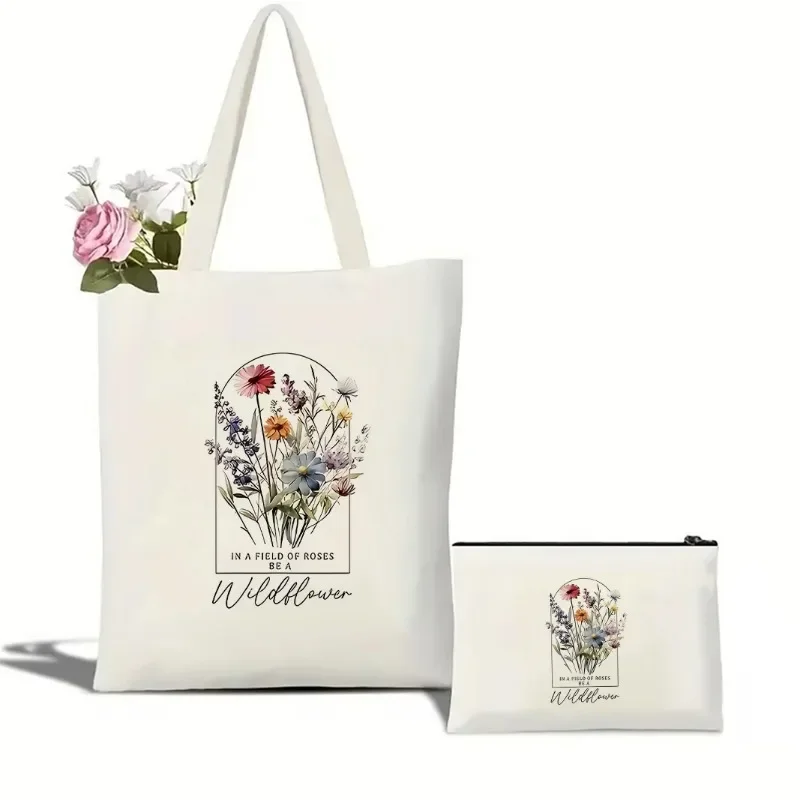 Эстетическая холщовая сумка-тоут с полевыми цветами, милая сумка Cottagecore с полевыми цветами, сумка для книг с цветочным принтом для нее, модный ботанический женский подарок в стиле бохо
