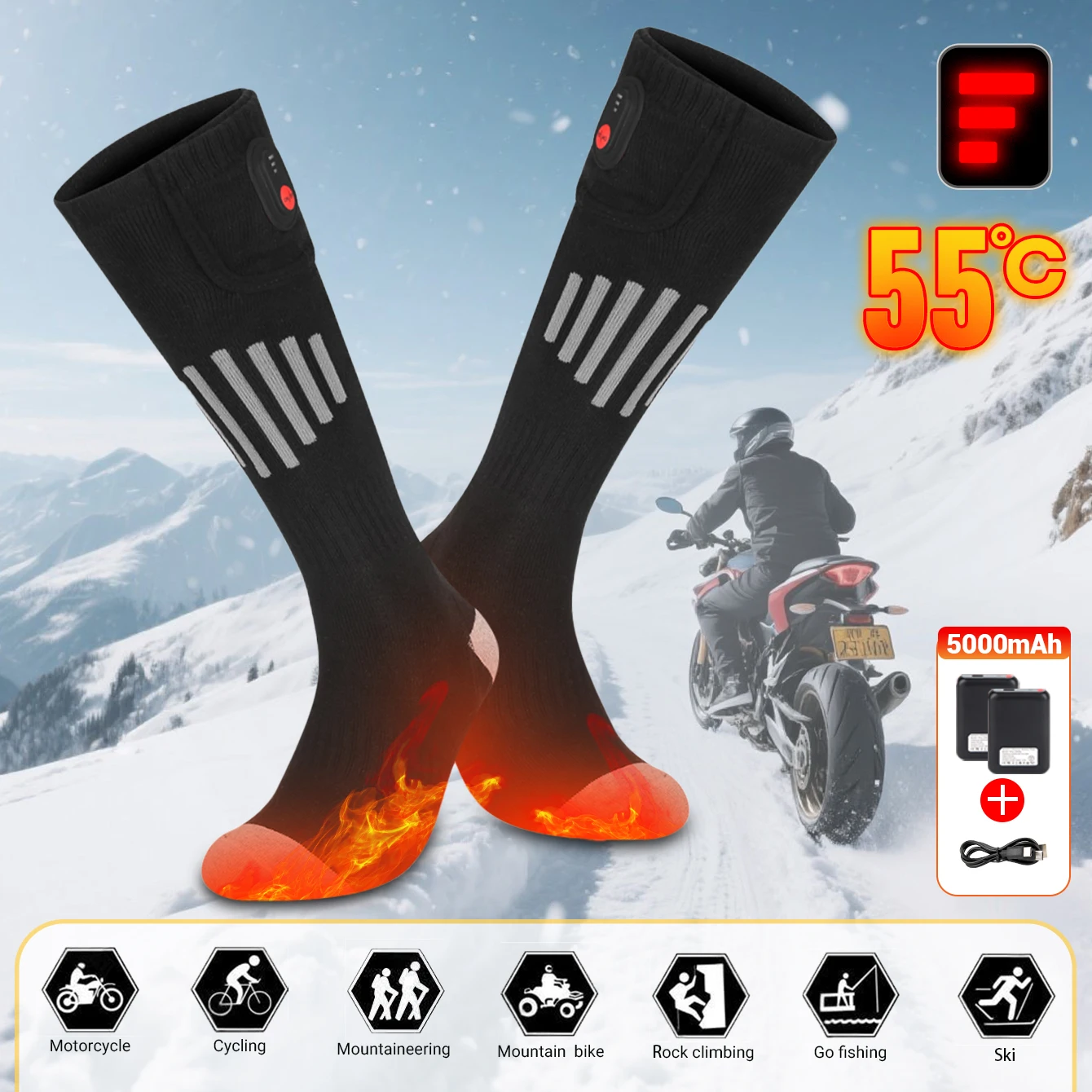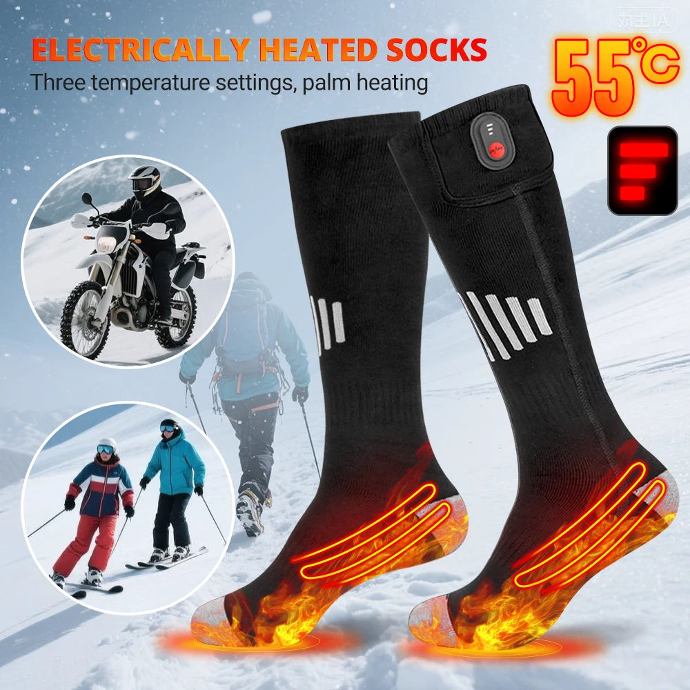 Мотоциклетные носки с электрическим подогревом, теплые носки с подогревом для снегоходов, перезаряжаемая батарея, зимние термотолстые чулки для мужчин и женщин