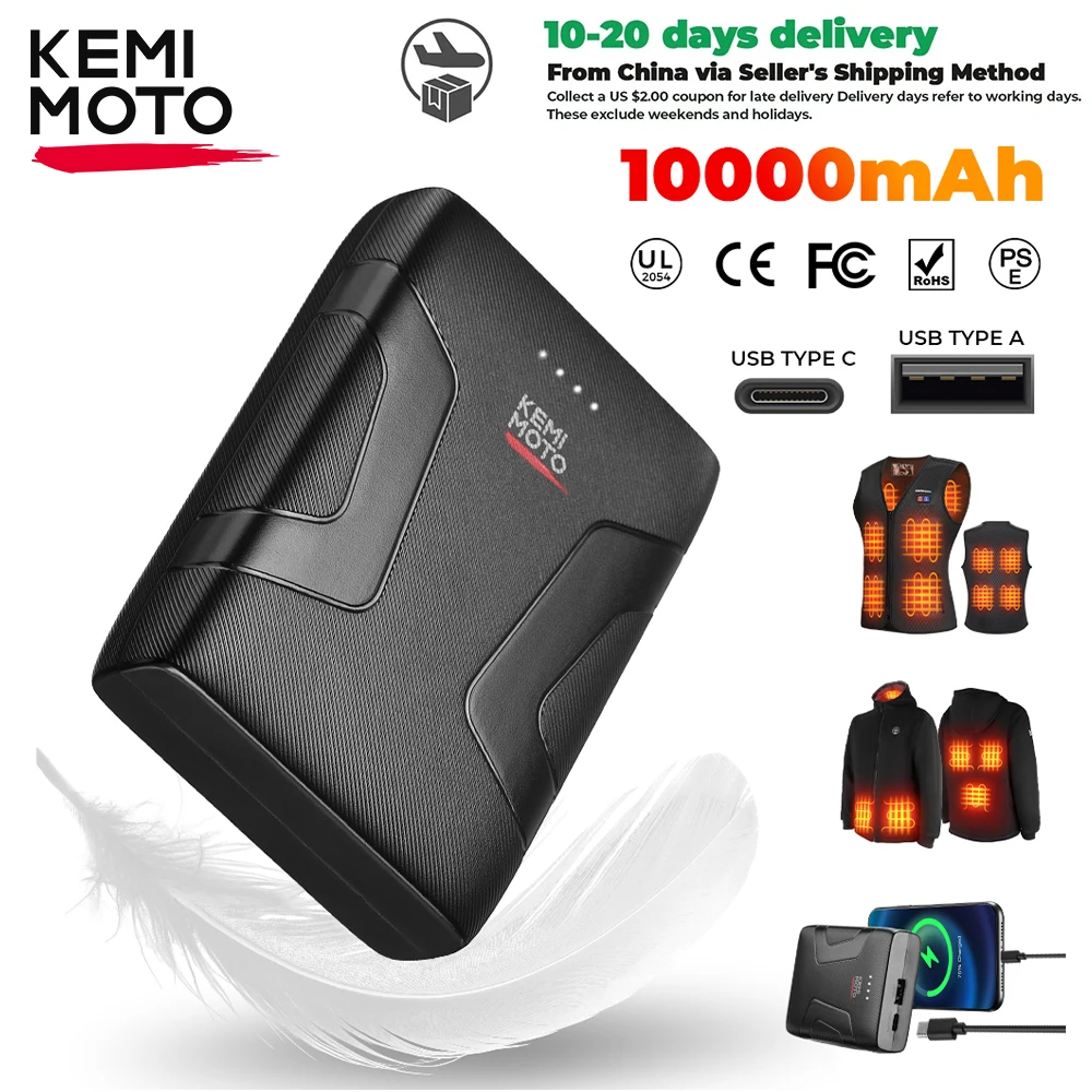 Мини-батарея 10000 мАч Power Bank для жилетов с подогревом, курток, быстрая перезаряжаемая безопасная сертификация CE, портативное зарядное устройство для улицы