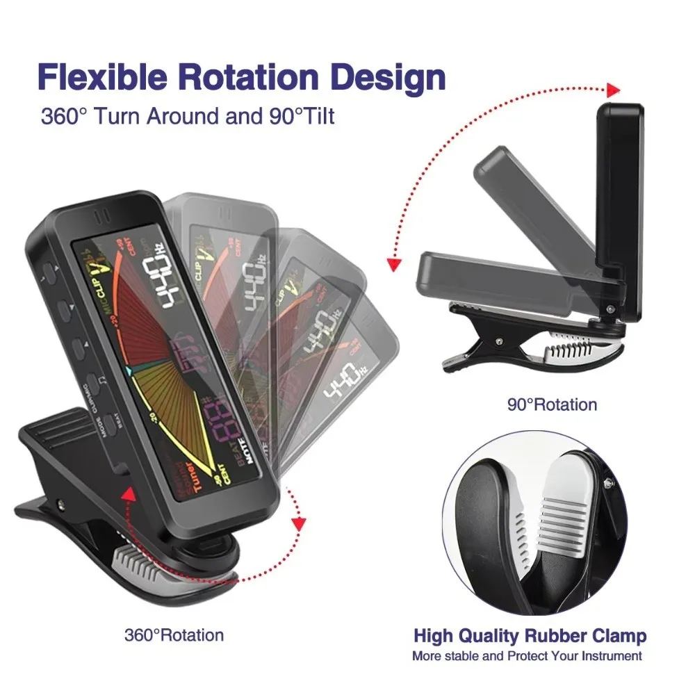 Многофункциональный метроном-тюнер 3-в-1 с перезаряжаемой батареей, креплением-клипсой, цифровым дисплеем и генератором звуков с поворотом на 360 градусов для гитары