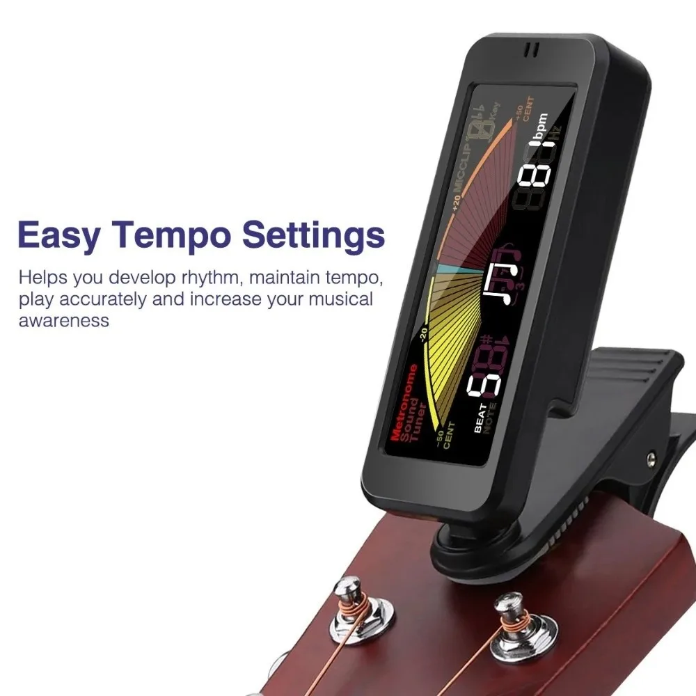 Гитарный тюнер с зажимом, тюнер с зажимом для электрогитары, портативный струнный инструмент, настроечное устройство для бас-гитары, гавайской гитары, банджо и