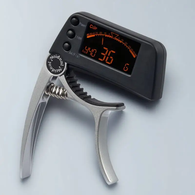 2-в-1 электрический цифровой ЖК-тюнер для гитары и каподастр с зажимом для акустического бас-гитары, гавайской гитары, мандолины, банджо, тональный генератор, кофе