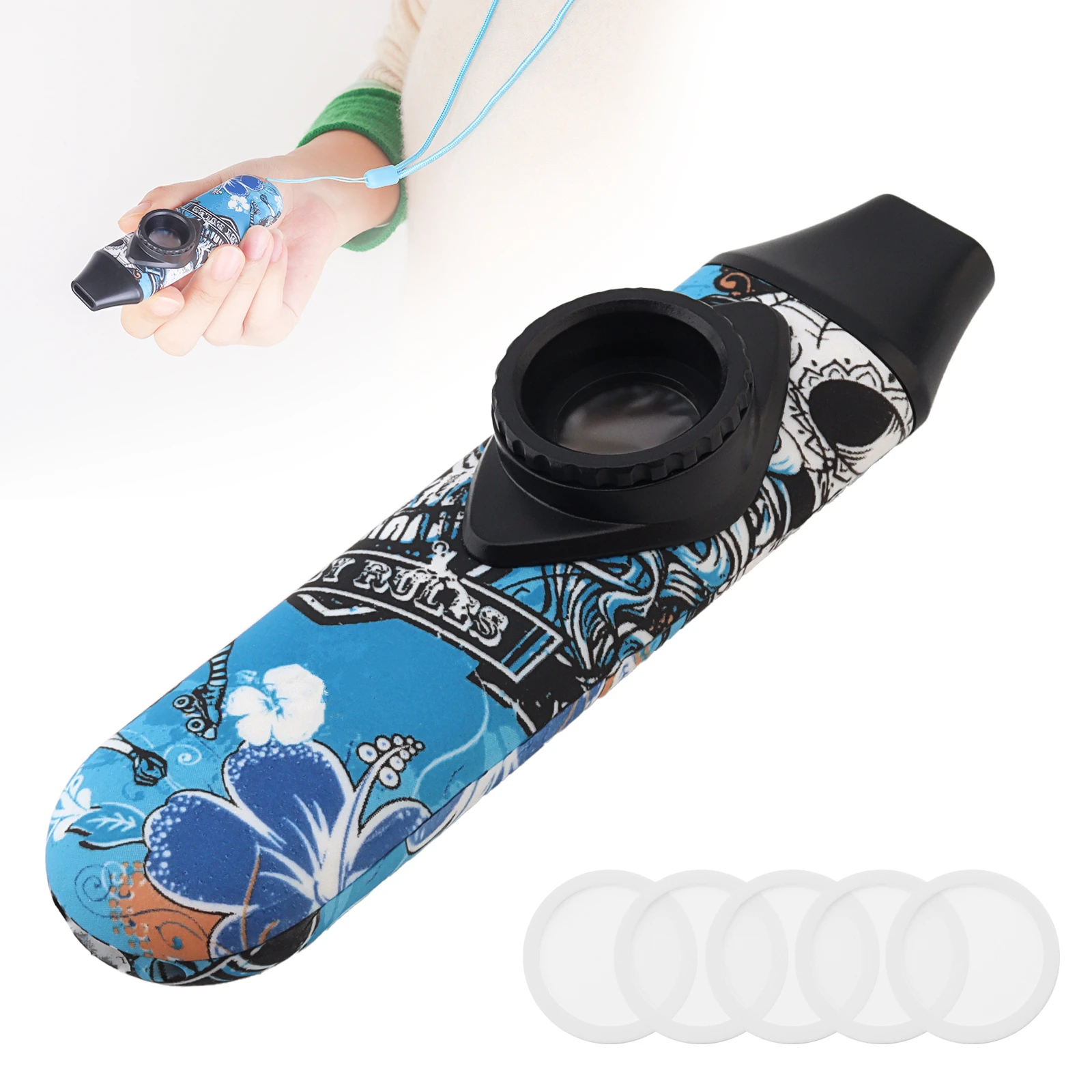 Маленький пластиковый музыкальный инструмент Kazoo со шнурком для детей, взрослых, начинающих, тренировочных выступлений, гитарный партнер, забавная музыка