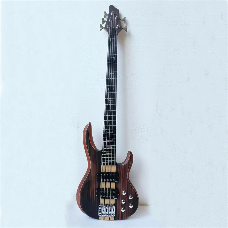 5-струнный электрический бас-гитара для левой руки, сквозная часть тела с верхней частью из красного дерева и клена, активные звукосниматели HH, накладка на гриф из палисандра, многоконтроль