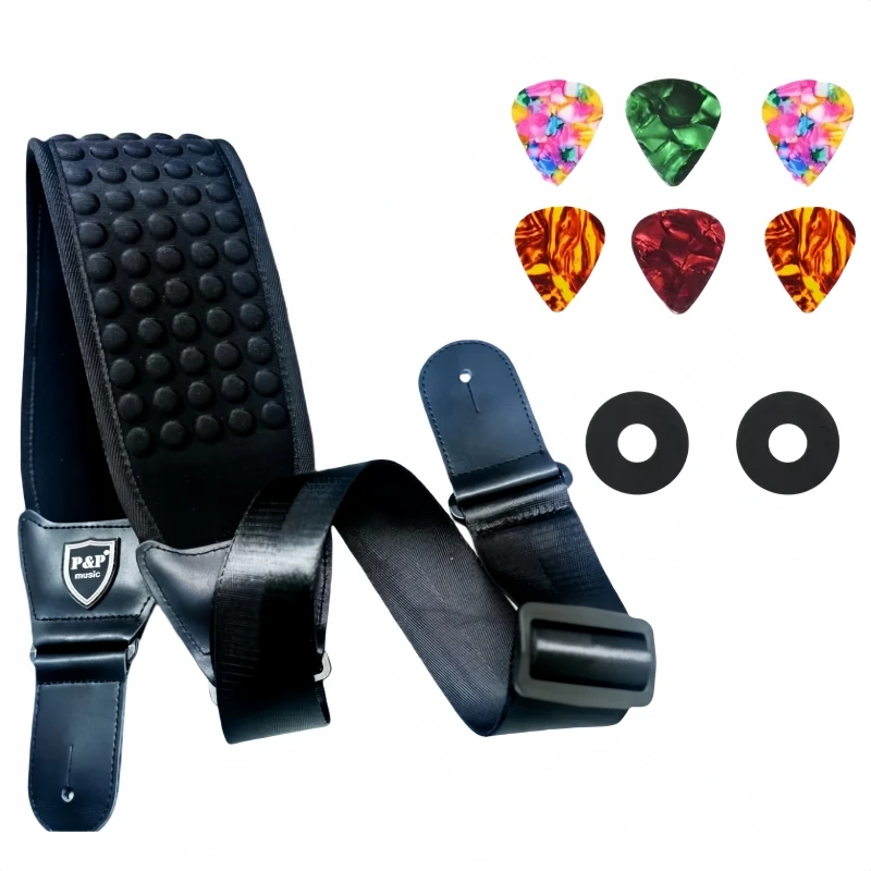 Широкий гитарный ремень на воздушной подушке 3,5 дюйма с замками на 2 ремня и 6 медиаторами — регулируемый Lekato 50-61 дюймов для бас-гитары/электрической гитары