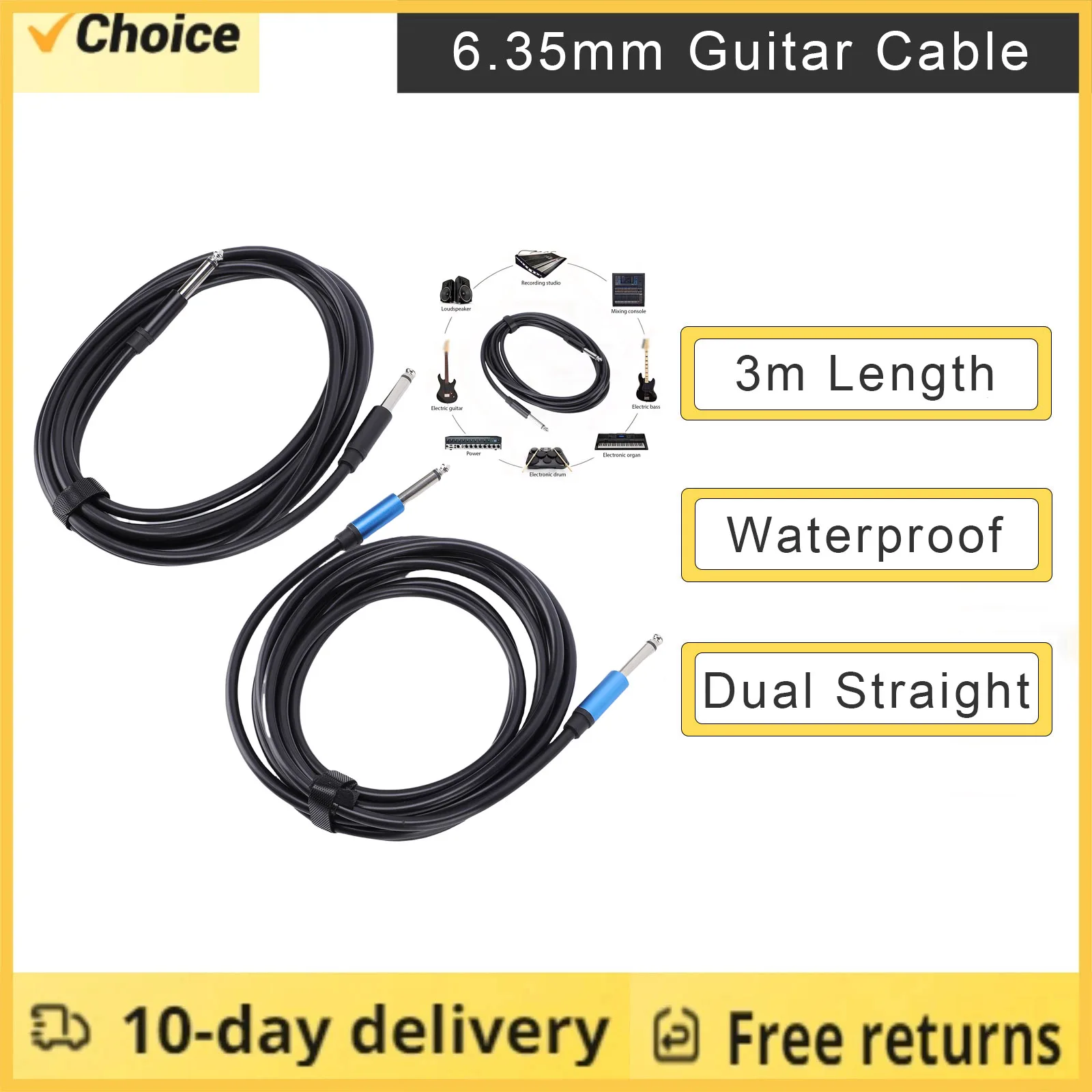 6 шт. кабелей для инструментов Right To Right, 15 см, с плоскими металлическими разъемами, из бескислородной меди, двойное экранирование, для эффект-процессоров