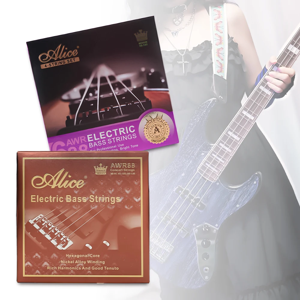 Alice AWR698 Электрические 4-нитовые струны 45-105 Шестиугольный сердечник из высокоуглеродистой стали, никель-стальная обмотка, профессиональное использование