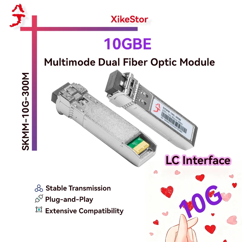 Оптический модуль 10G SFP+ MM LC с двумя оптическими портами - совместим с NAS, коммутаторами, роутерами, сетевыми контроллерами и медиаконвертерами различных производителей.