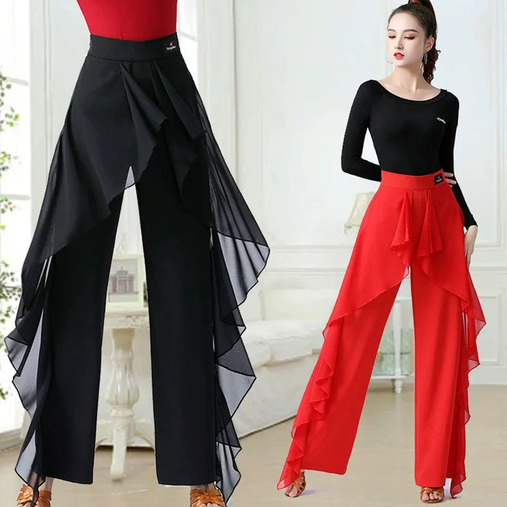 Guoguo Bu брюки для латинских танцев, современные танцевальные брюки, женские широкие брюки с высокой талией и краем листьев лотоса, одежда для тренировок дружбы Gitaba