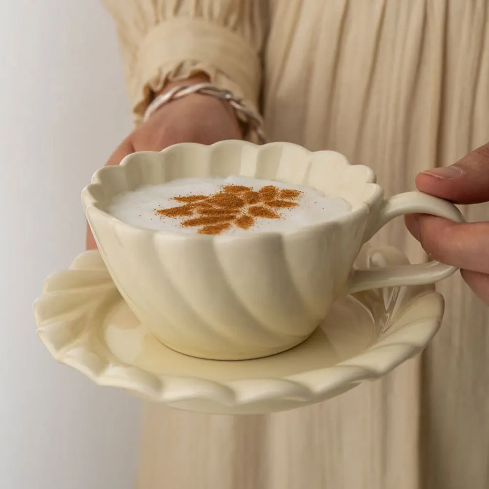 Набор керамических чашек с блюдцами, простой дизайн, плоское дно, для кофе, чая, молока, супа, для домашнего использования, повседневная посуда для напитков на рабочий стол