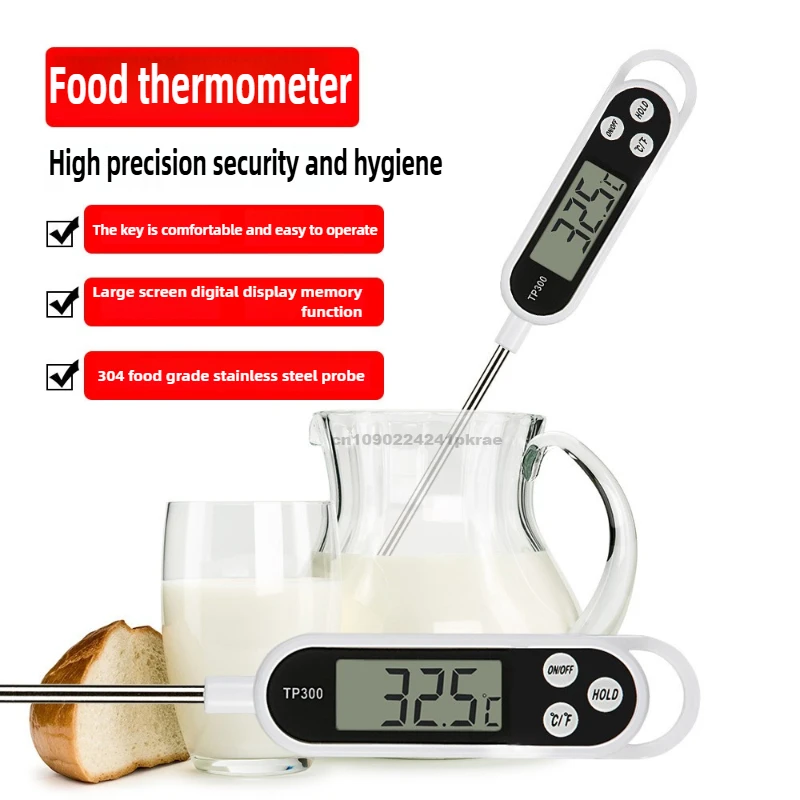 Пищевой термометр с цифровым дисплеем, портативный карманный термометр из нержавеющей стали TP300, термометр для кофе, барбекю, приготовления молочной пены