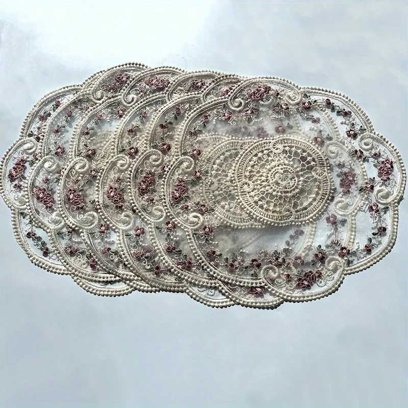 Набор круглых плетеных салфеток из 6 штук, моющиеся коврики для столовых приборов, термостойкие и морщины по краям, коврики для стола для украшения кухонного стола