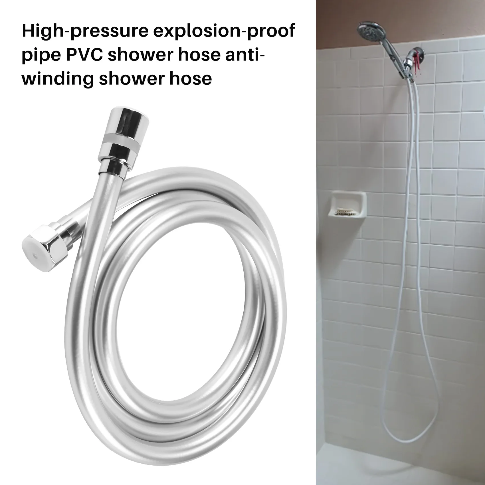 Высококачественный толстый душевой шланг из ПВХ для ванной комнаты, серебристый, не запутывающийся, мягкий гибкий душевой шланг G1/2, разъем из нержавеющей стали