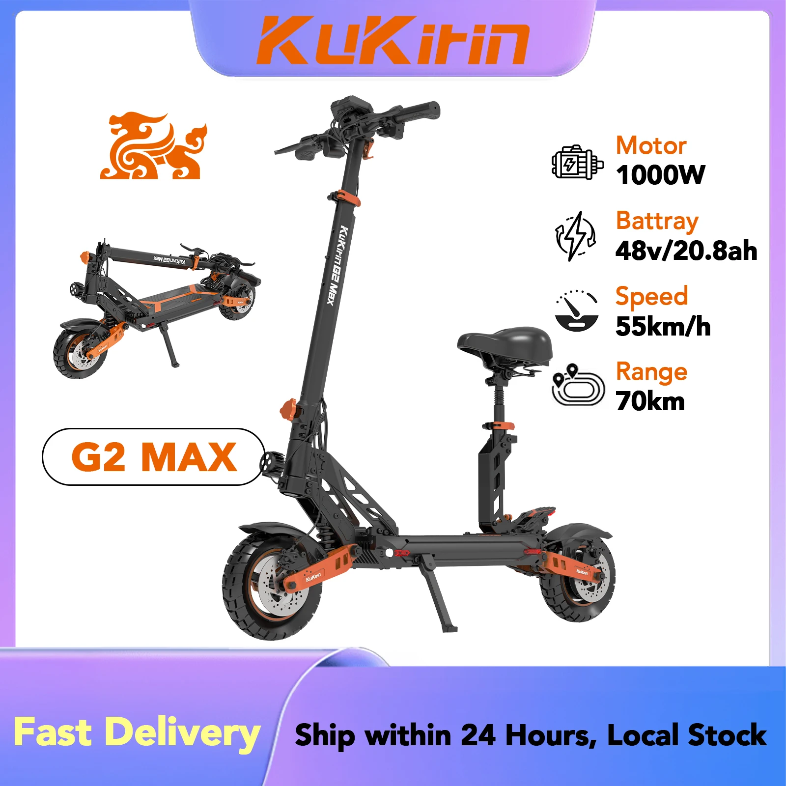 Электросамокат KuKirin G2 Max с сиденьем, мотор 1000 Вт, аккумулятор 48В20.8Ач, запас хода 70 км, 10-дюймовые пневматические шины, городской/горный, складной.