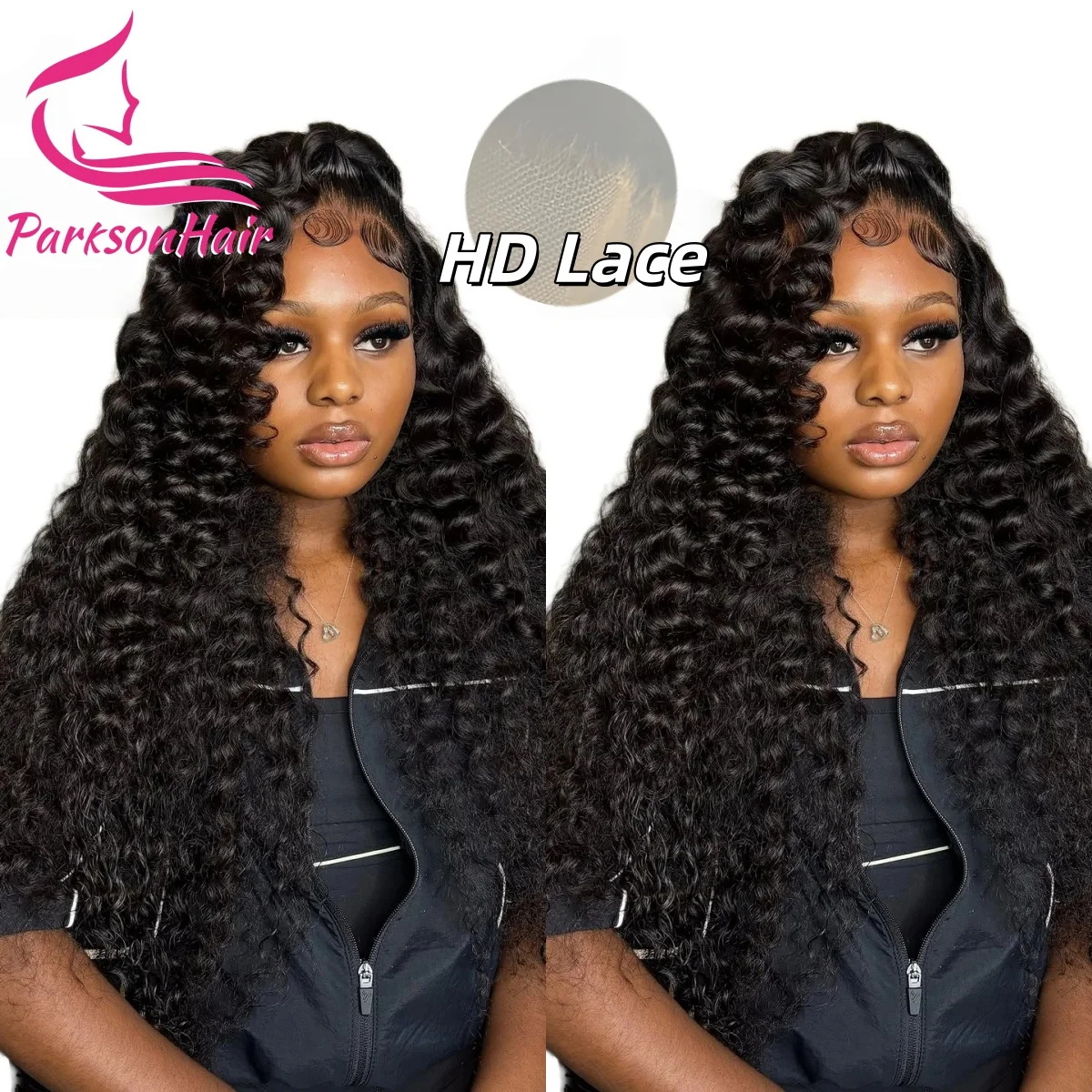 13x4 HD Полный кружевной передний вьющийся парик Глубокая волна Парик из человеческих волос Бразильский швейцарский HD Полный фронтальный парик для женщин Предварительно выщипанный вьющийся парик