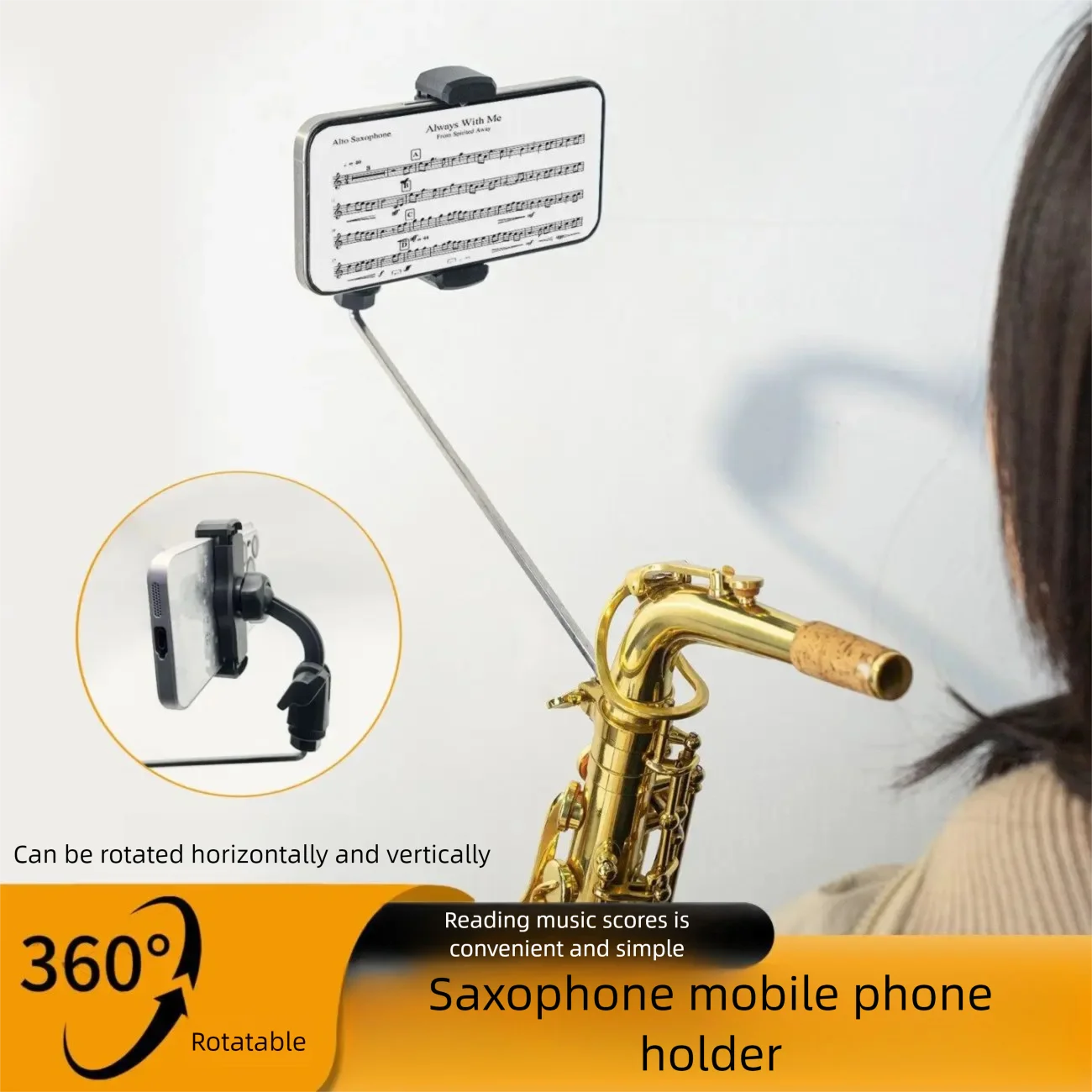 1 комплект держателя телефона для музыканта, регулируемая подставка для телефона на гитаре, 360° ° Вращающаяся клипса для использования в практике вещательных листов
