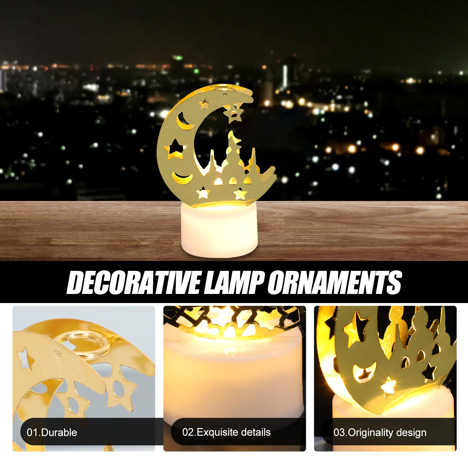 Набор из 3 светодиодных декоративных светильников «Ид Мубарак», ажурные железные украшения для декора дома на Рамадан, светящийся ночник, набор для творчества DIY