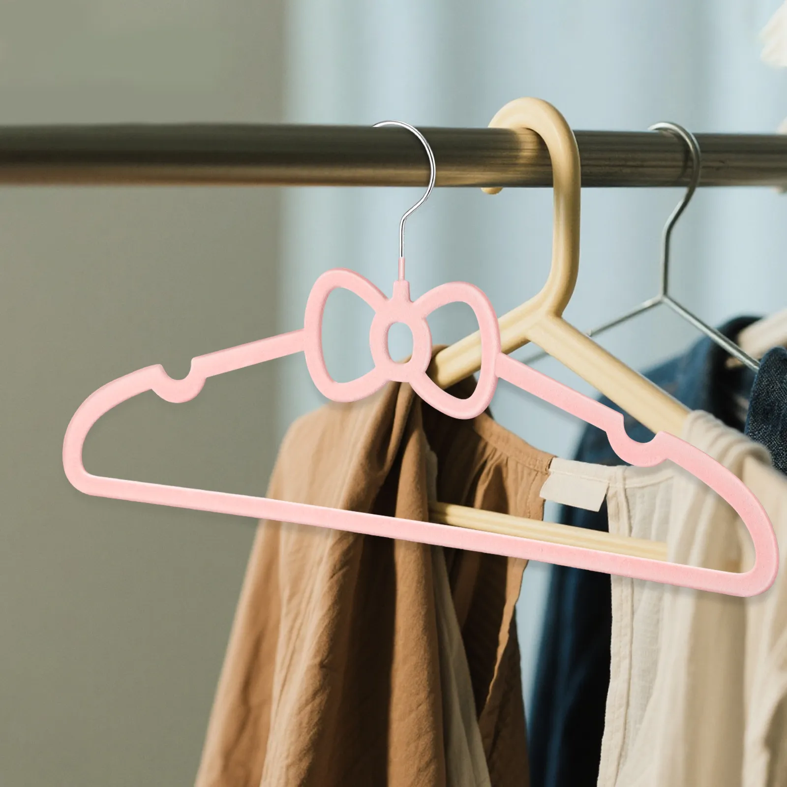Набор из 10 флокированных вешалок для одежды с бантом, декоративные, прочные, легкие, для хранения взрослой одежды: платьев, пальто, брюк, юбок, рубашек, костюмов