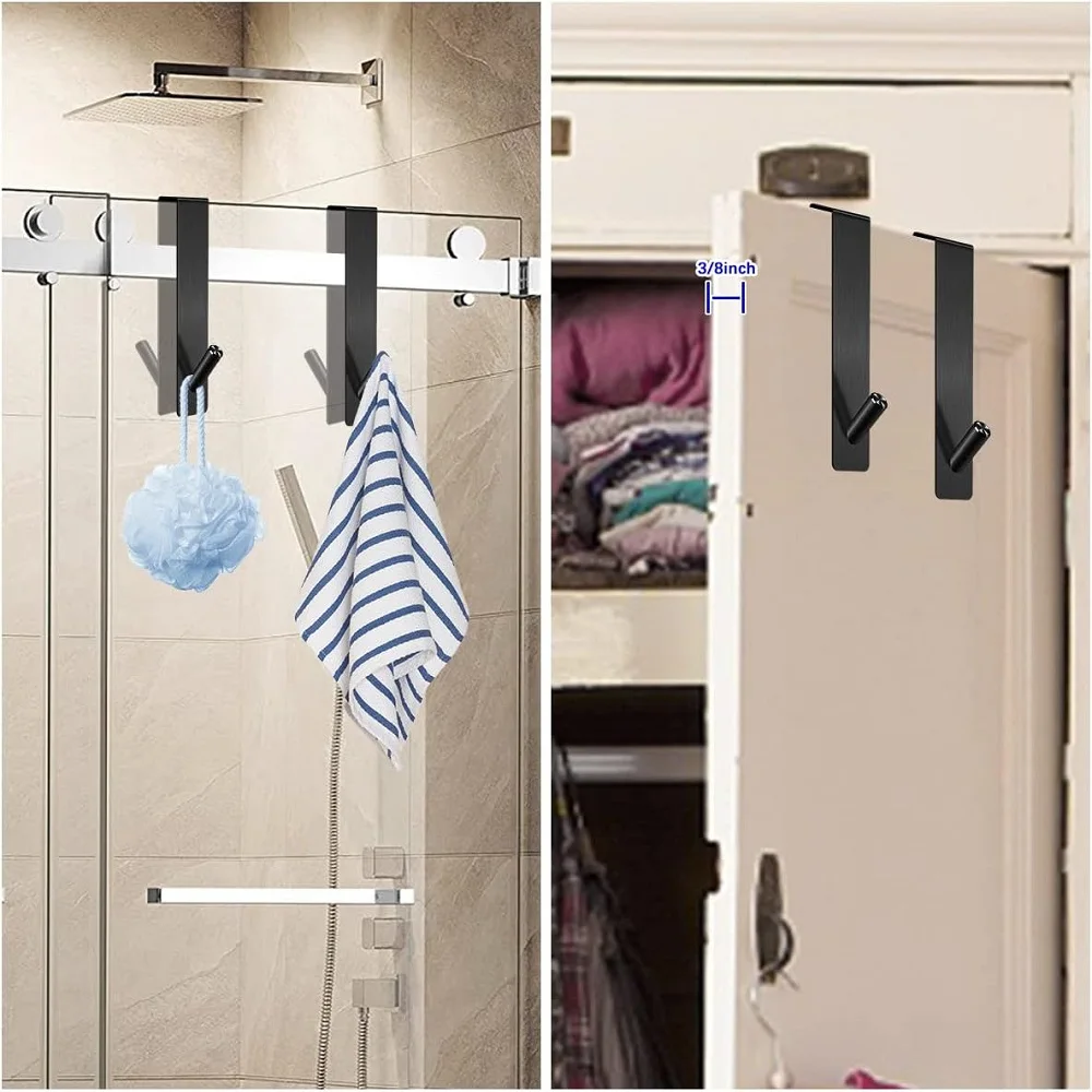 2 шт. вешалка для халата для душевой комнаты, стеклянные крючки для подвешивания над дверью, водонепроницаемая вешалка для полотенец без перфорации, металлические крючки для банных полотенец